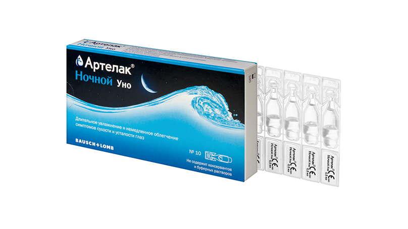 Капли Артелак Ночной Уно в одноразовых ампулах по 0,5 мл (№10) предназначены для интенсивного увлажнения глаз во время ношения контактных линз и продления периода их комфортного использования.